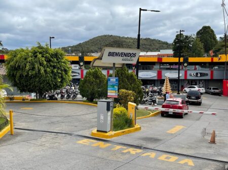 Plaza El Naranjo es un centro comercial ubicado en la Zona 4 de Mixco, Guatemala. Se caracteriza por su diseño compacto de dos niveles, con locales comerciales distribuidos alrededor de un área central de estacionamiento.
